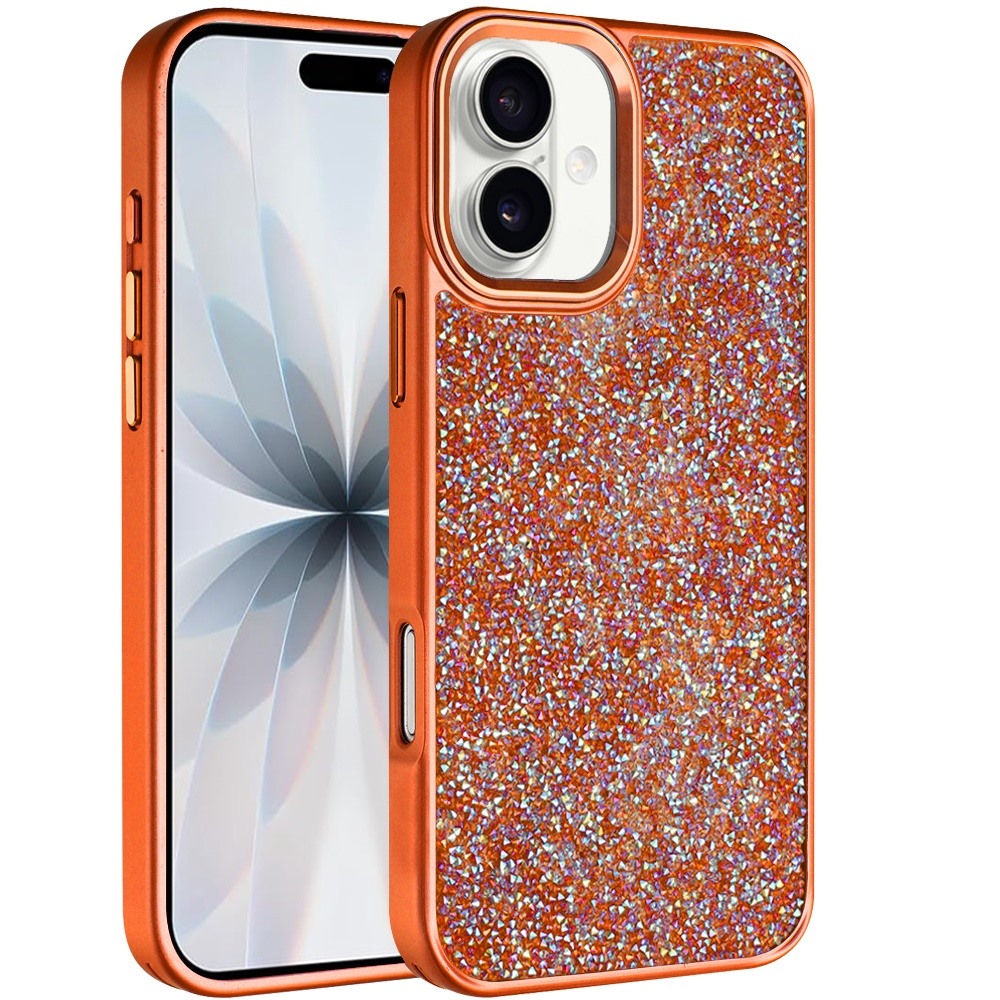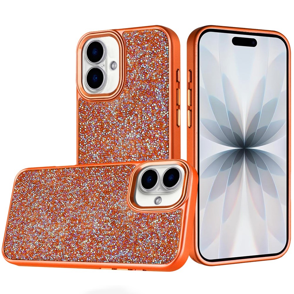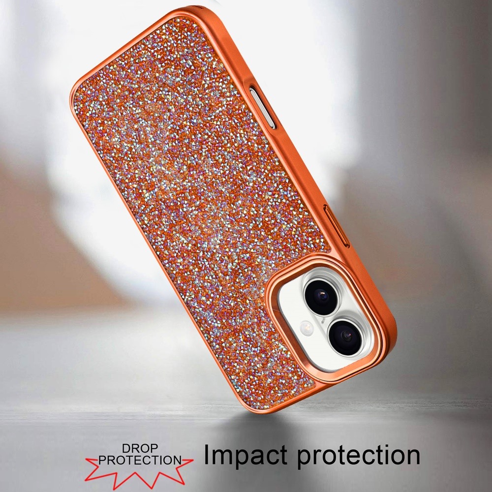 For iPhone 17 Crystal Glass Diamond with Metallic Buttons and Edges Hybrid Case - Cosmic Orange