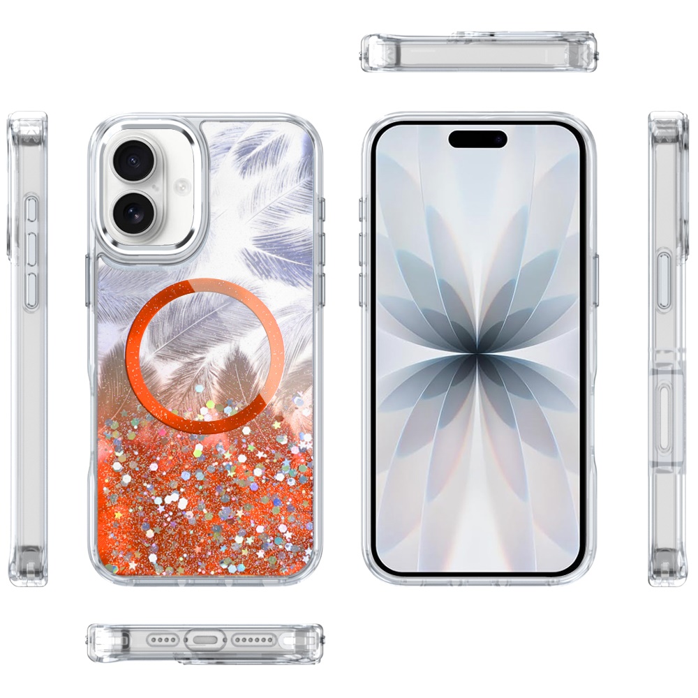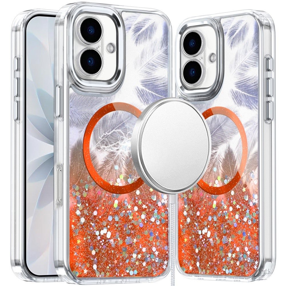 For iPhone 17 Epoxy Glitter Shimmer [Magnetic Circle] Hybrid Case - Cosmic Orange