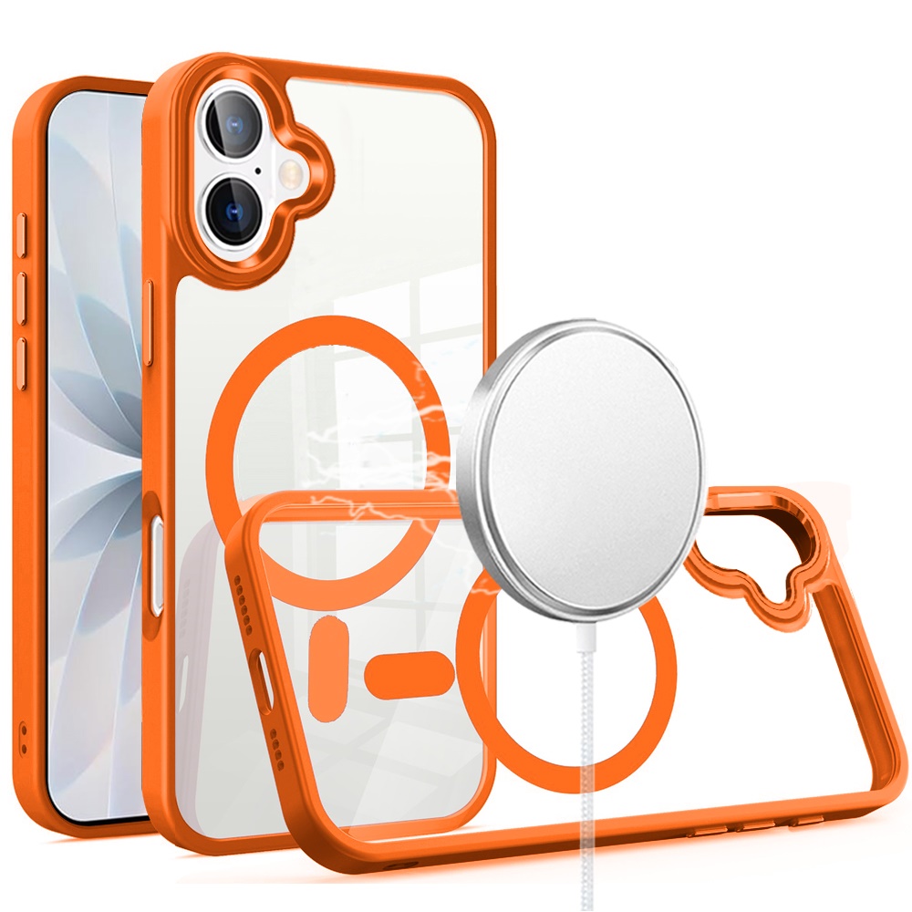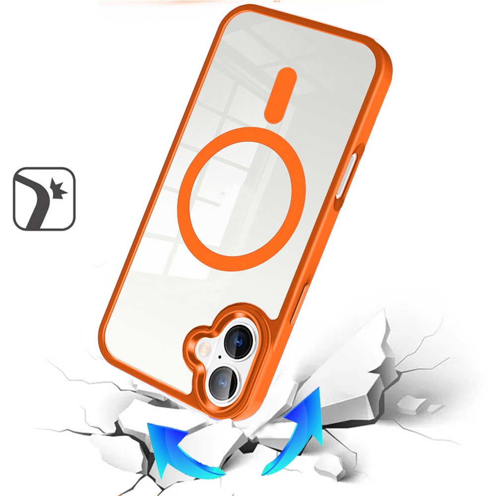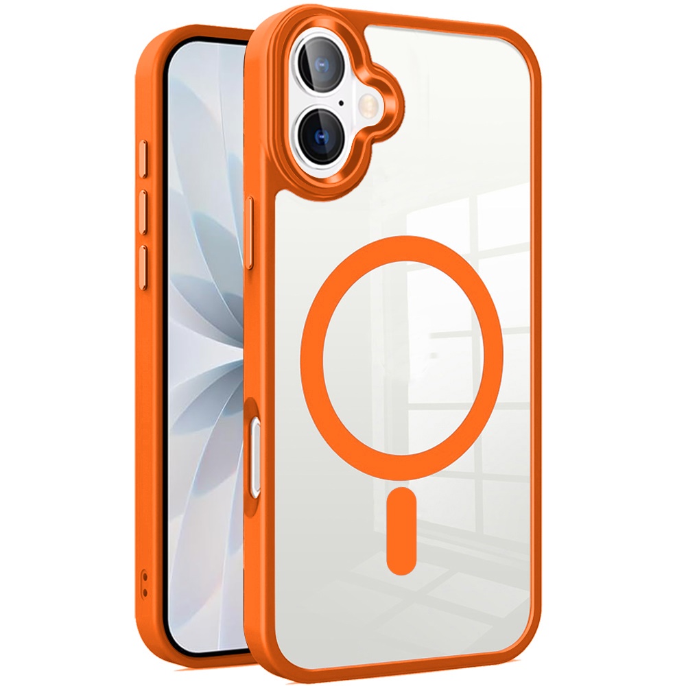 For iPhone 17 Greatest Clear Acrylic [Magnetic Circle] ShockProof ToughThick Metal Button Hybrid - Cosmic Orange