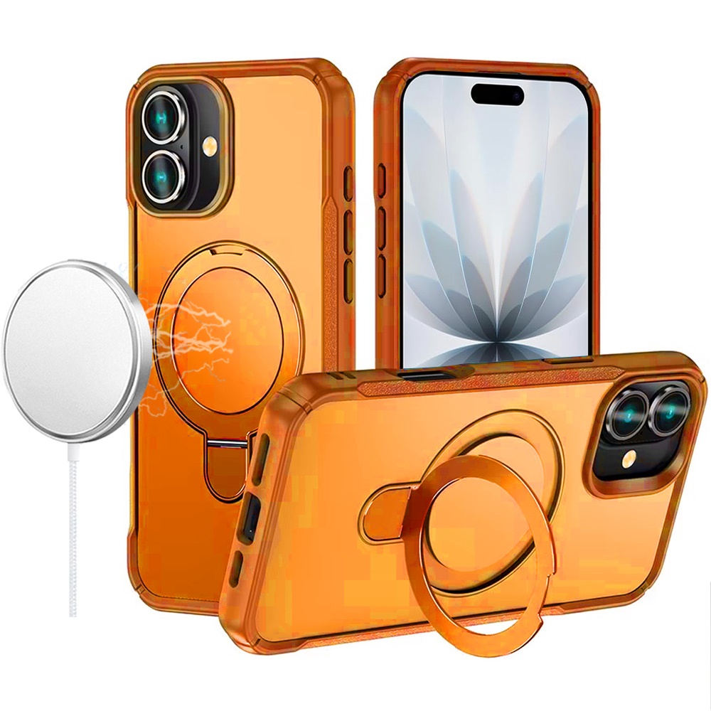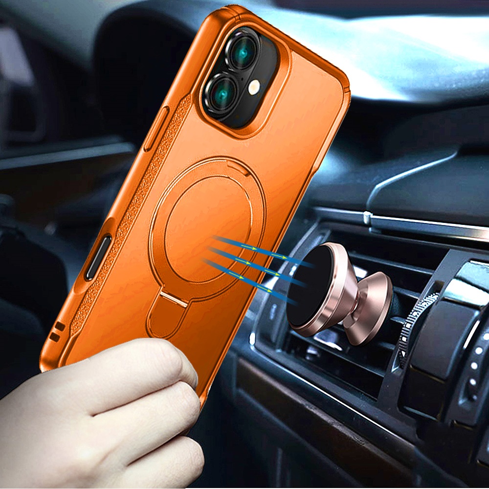 For iPhone 17 Matte Finish Simplified Magnetic Ring With Stand Hybrid Case - Cosmic Orange