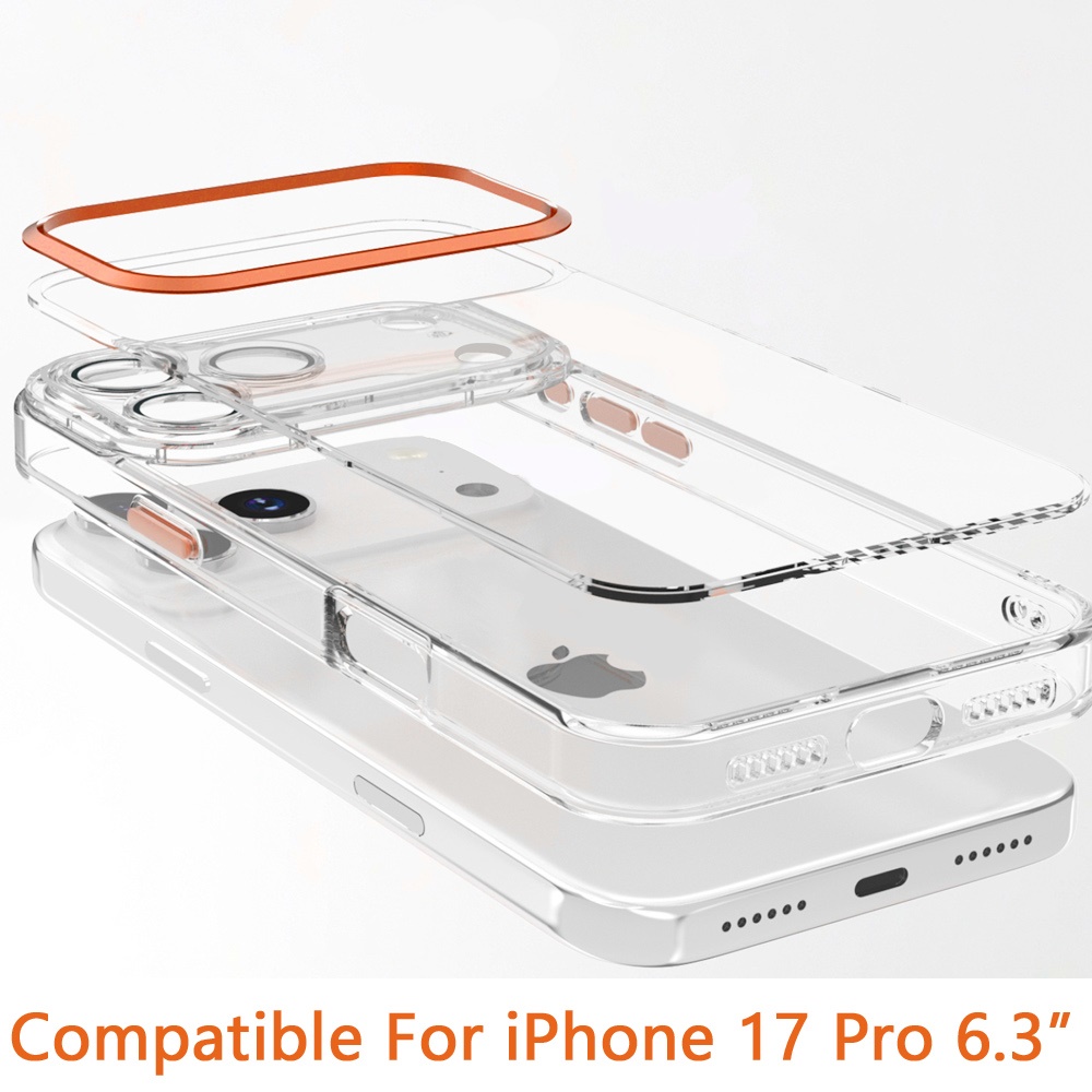 For iPhone 17 Pro Transparent Clear Hybrid with Matching Metal Buttons and Camera Protection - Cosmic Orange