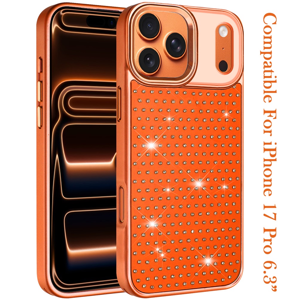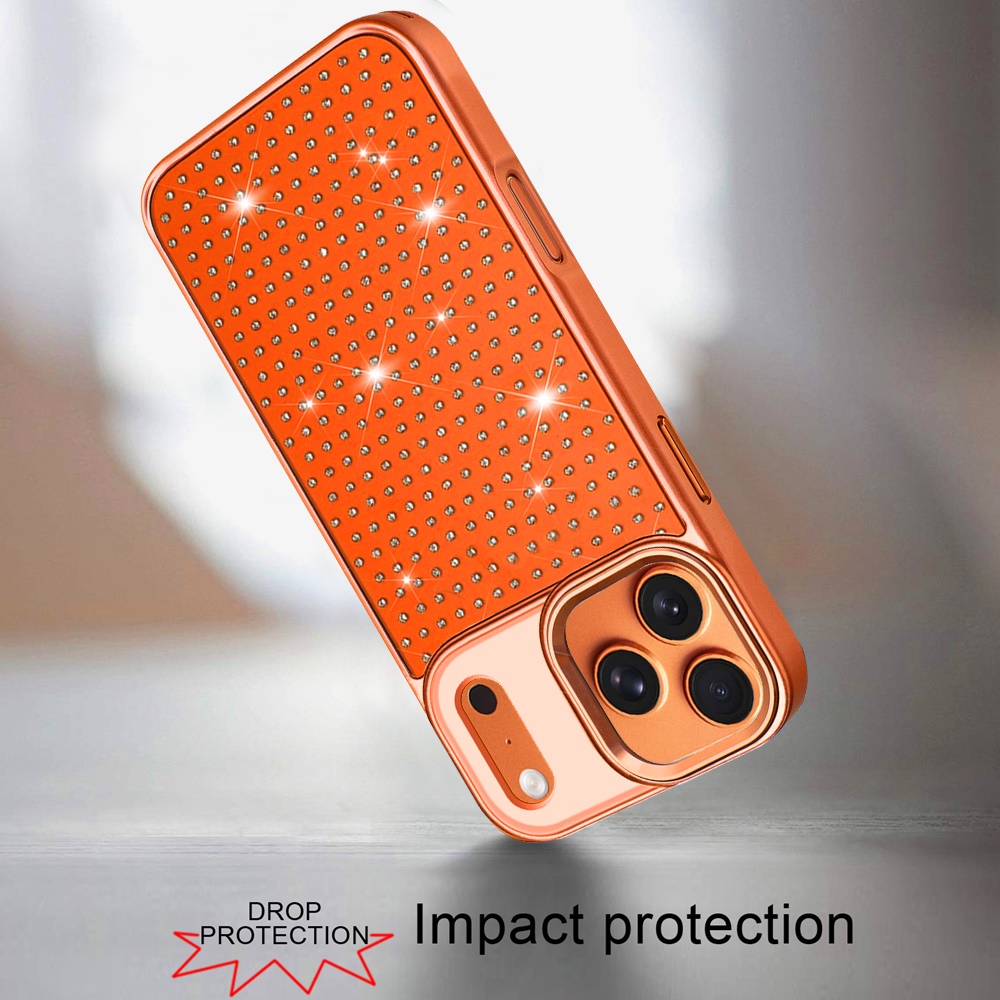 For iPhone 17 Pro Beautiful Diamond Metallic Design Metal Chrome Edged Hybrid - Cosmic Orange