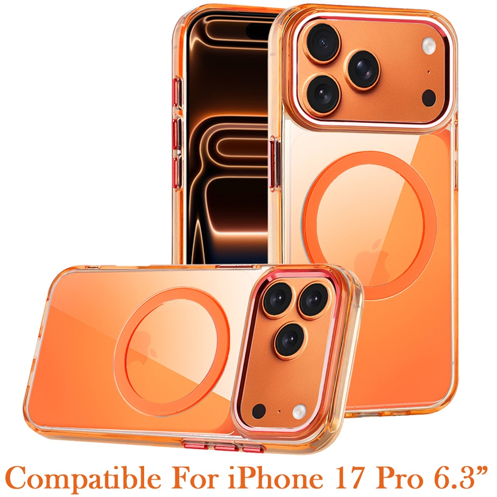 For iPhone 17 Pro Magnetic Circle Ring Transparent Premium Acrylic with Metal Buttons & Camera Raised Lip - Cosmic Orange