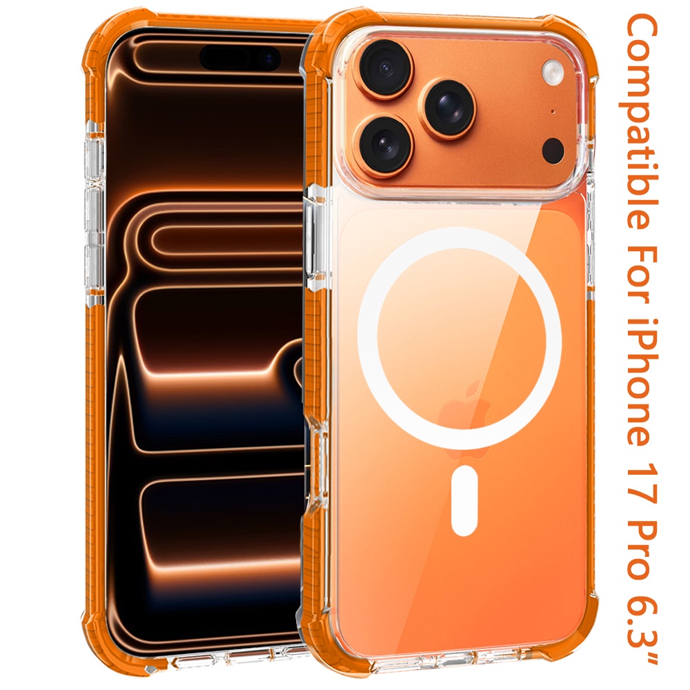 For iPhone 17 Pro Acrylic [Magnetic Circle] Tough 2.5mm Transparent ShockProof Hybrid - Cosmic Orange