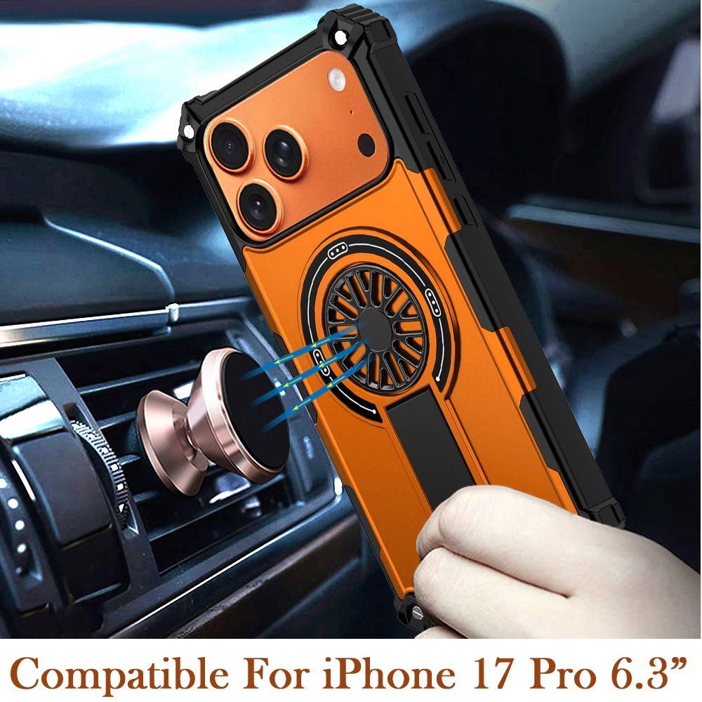 For iPhone 17 Pro CD Texture Design Magnetic Car Mount Friendly HQ Hybrid - Cosmic Orange