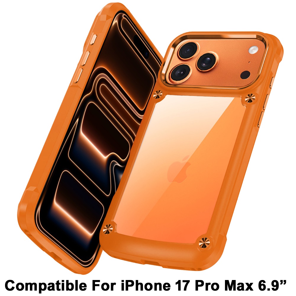 For iPhone 17 Pro Max Ultimate CaseX Transparent Hybrid Case with Metal Buttons And Camera Edges - Cosmic Orange