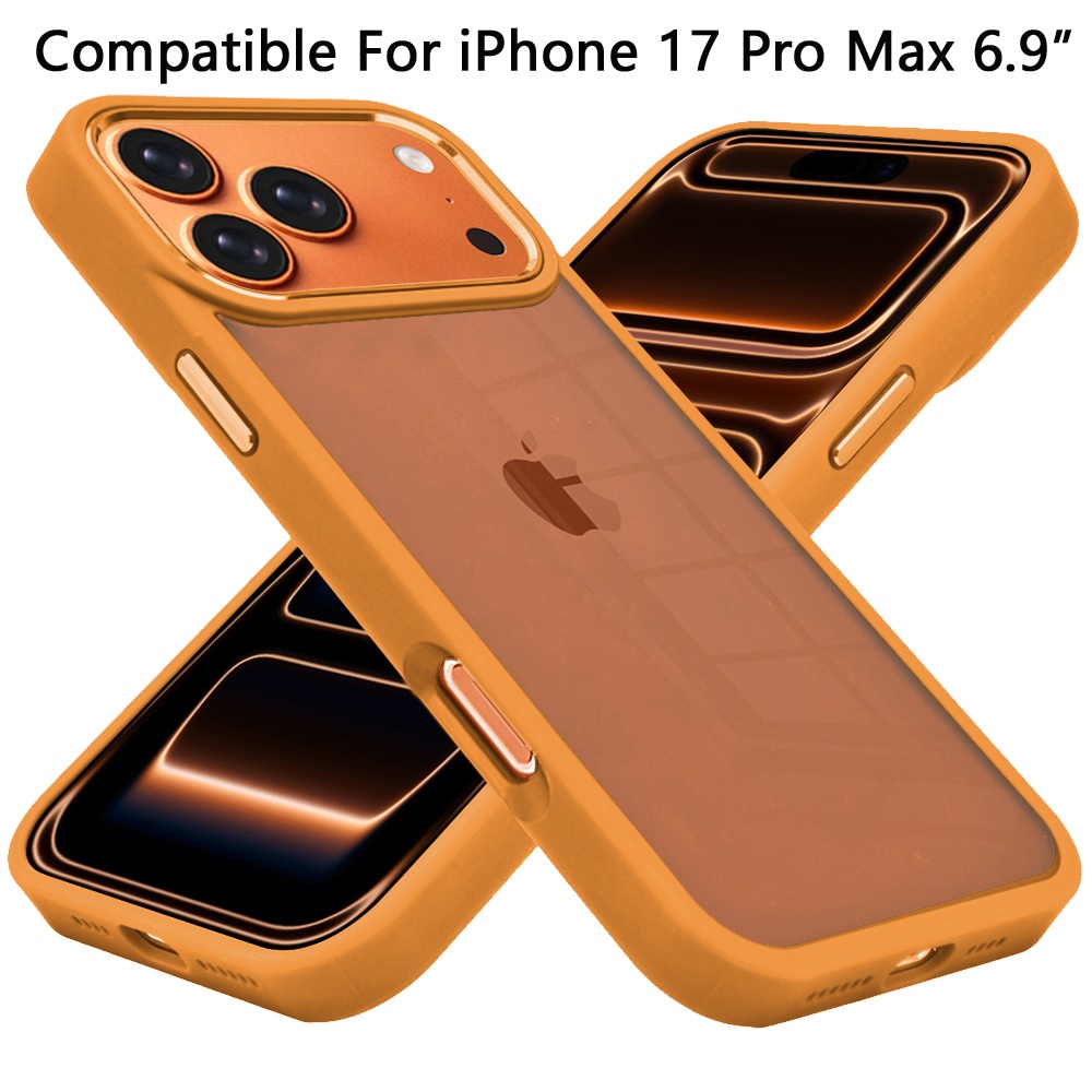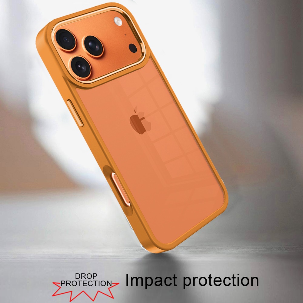 For iPhone 17 Pro Max Finest Transparent Thick Acrylic Hybrid Metal Buttons Cover Case - Cosmic Orange