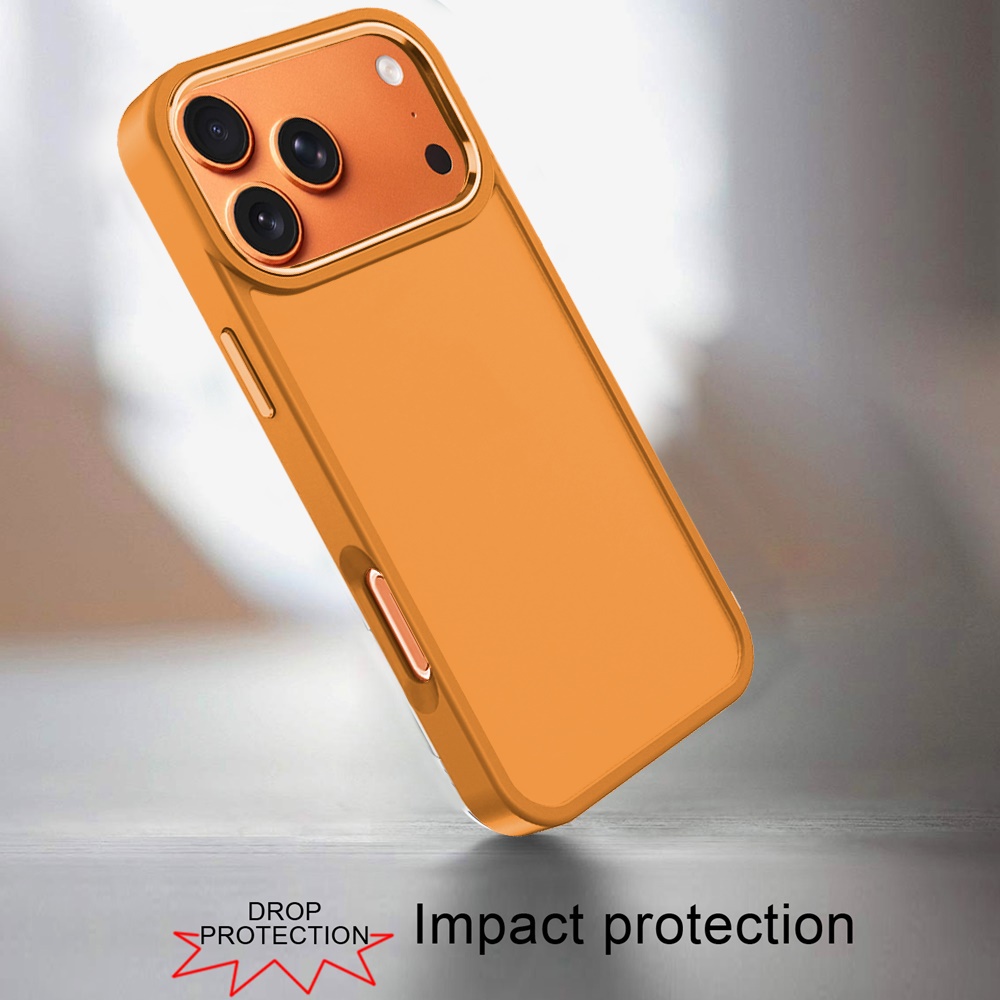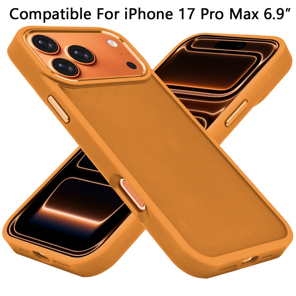 For iPhone 17 Pro Max Polished Oil Thick Acrylic Metal Button Hybrid Case Cover - Cosmic Orange