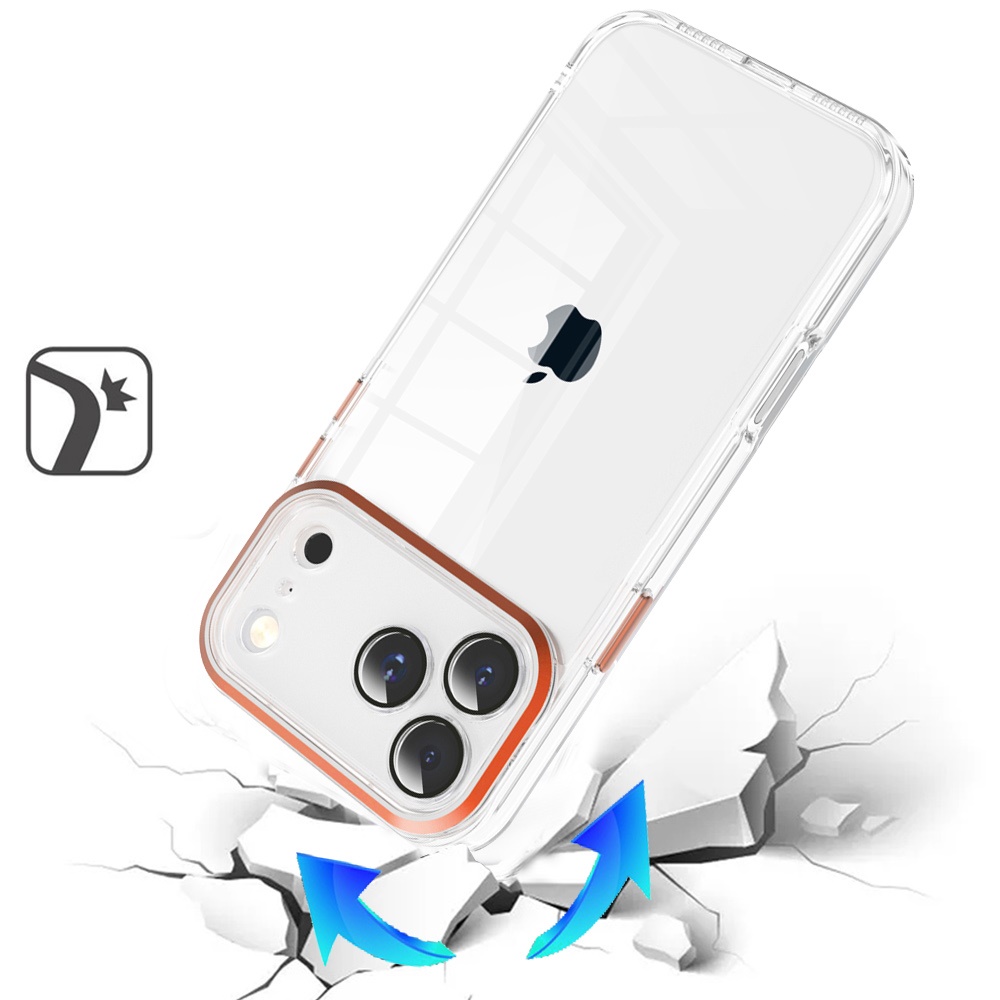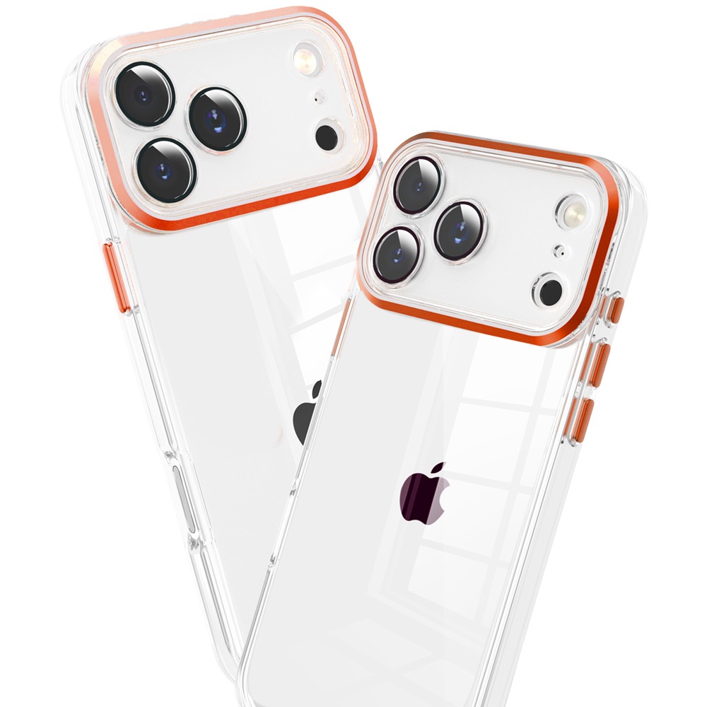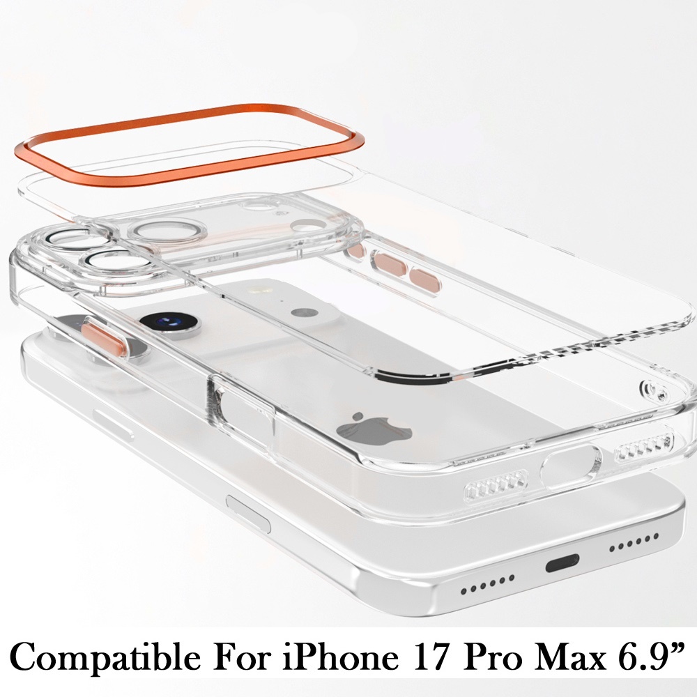 For iPhone 17 Pro Max Transparent Clear Hybrid with Matching Metal Buttons and Camera Protection - Cosmic Orange