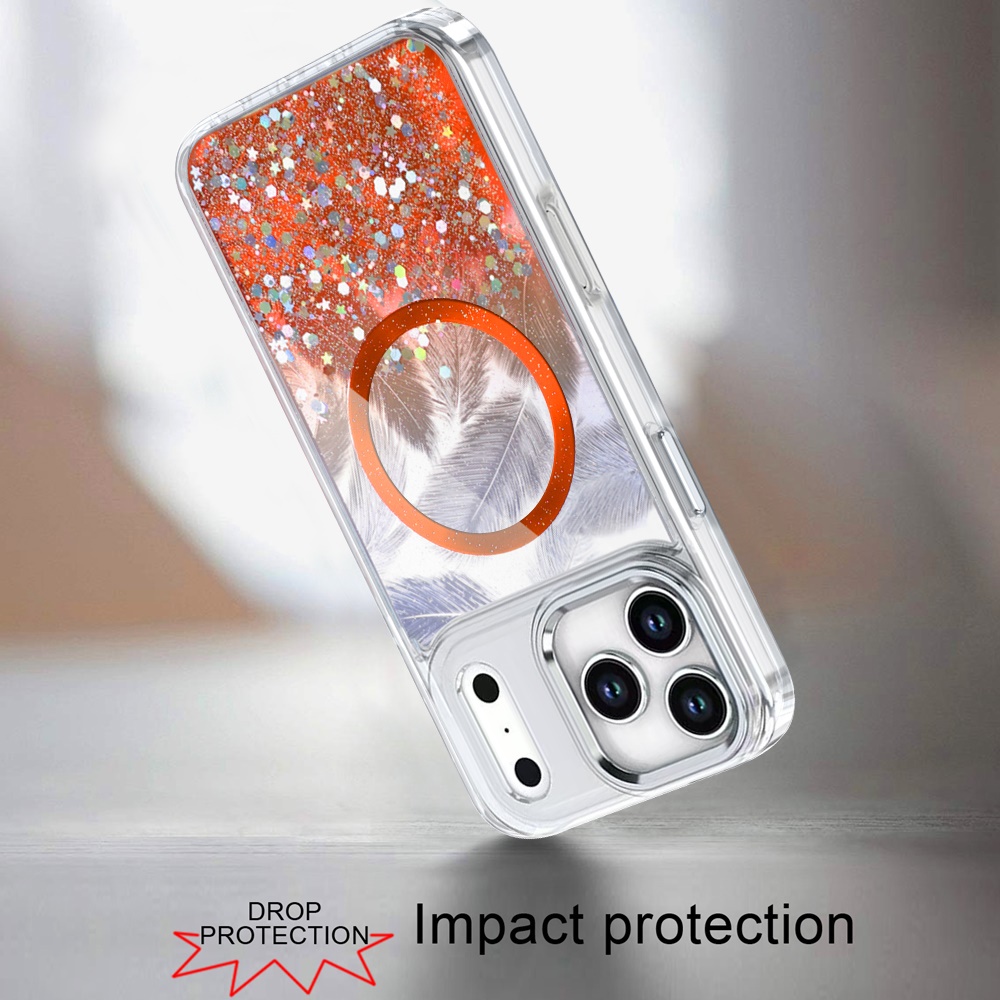 For iPhone 17 Pro Max Epoxy Glitter Shimmer [Magnetic Circle] Hybrid Case - Cosmic Orange