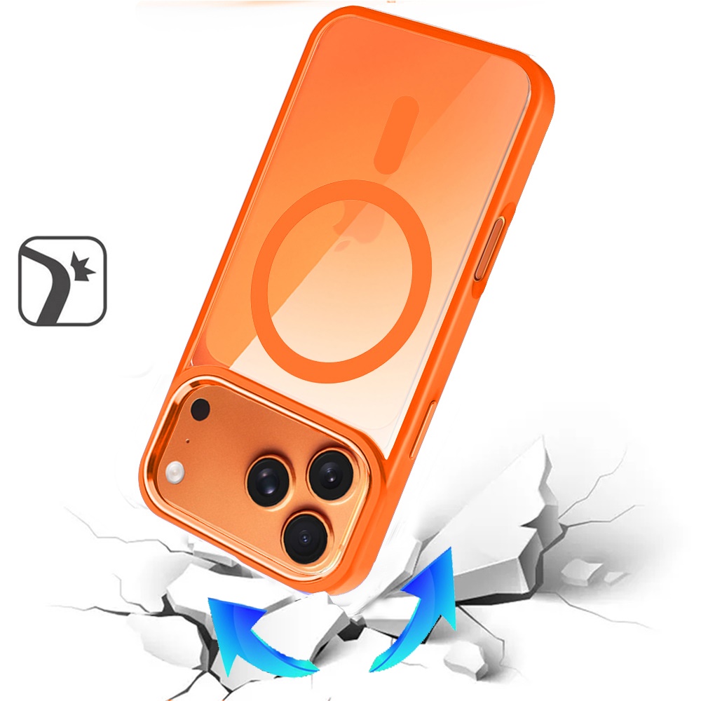 For iPhone 17 Pro Max Greatest Clear Acrylic [Magnetic Circle] ShockProof ToughThick Metal Button Hybrid - Cosmic Orange