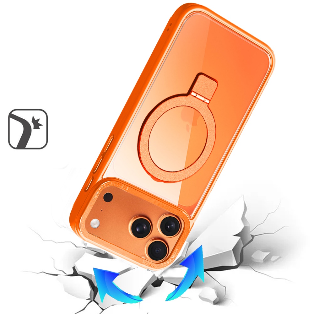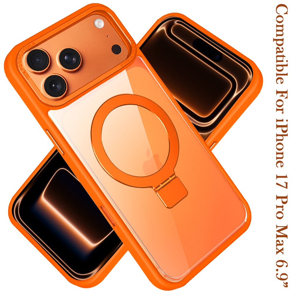 For iPhone 17 Pro Max Metal Chrome Kickstand [Magnetic Circle] Shockproof Matching Camera Hybrid - Cosmic Orange