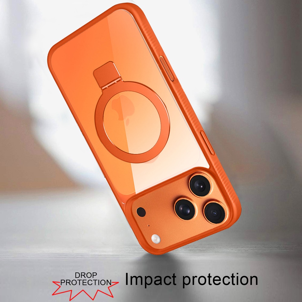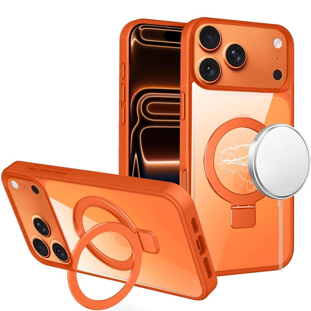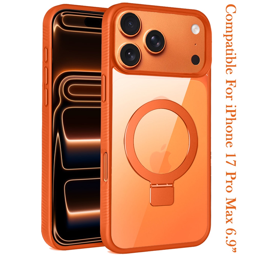 For iPhone 17 Pro Max Skin Touch Feel HQ [Magnetic Circle] Kickstand Hybrid - Cosmic Orange