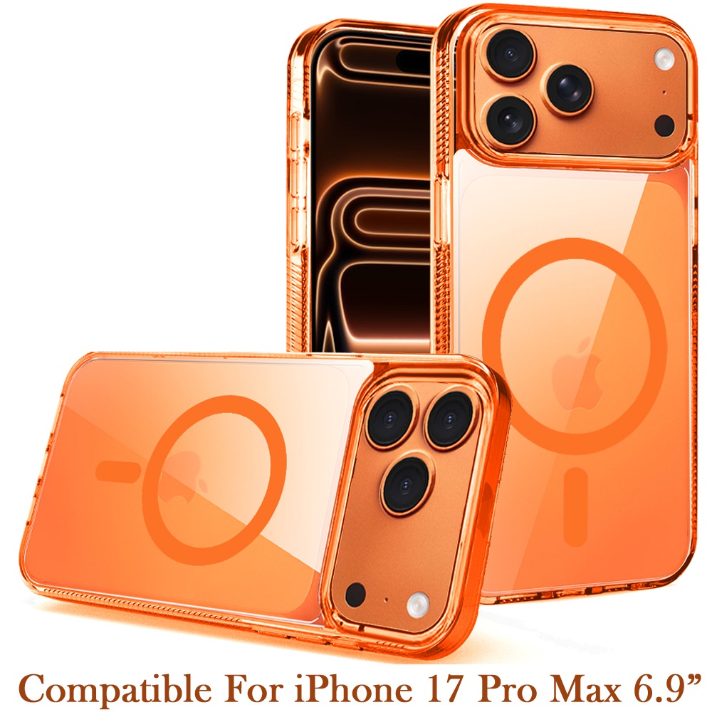 For iPhone 17 Pro Max PURE Transparent [Magnetic Circle] High Quality Ultra Thick Hybrid - Cosmic Orange