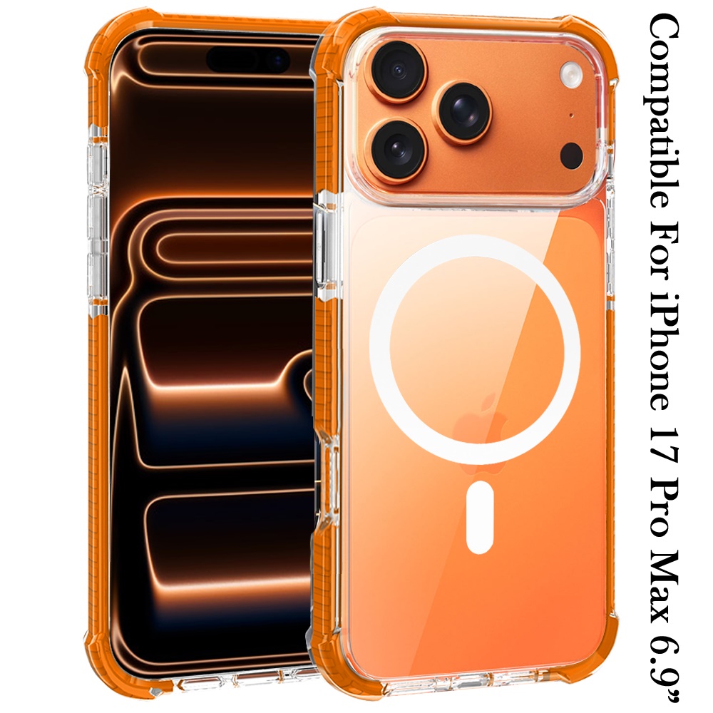 For iPhone 17 Pro Max Acrylic [Magnetic Circle] Tough 2.5mm Transparent ShockProof Hybrid - Cosmic Orange