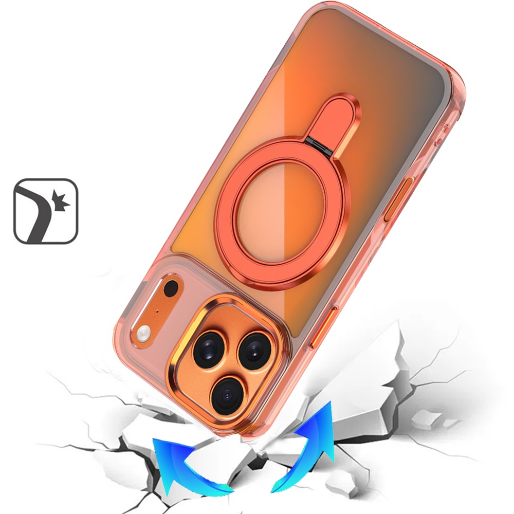 For iPhone 17 Pro Max CHROME HQ Rotational Magnetic Ring Hybrid - Cosmic Orange