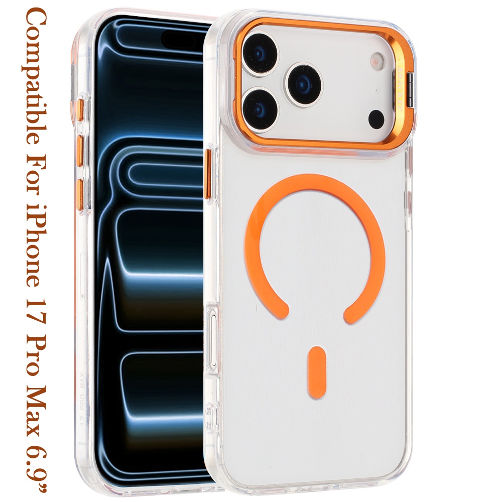 For iPhone 17 Pro Max Transparent HQ Hybrid with Metallic Camera Stand Magnetic Ring Case - Cosmic Orange