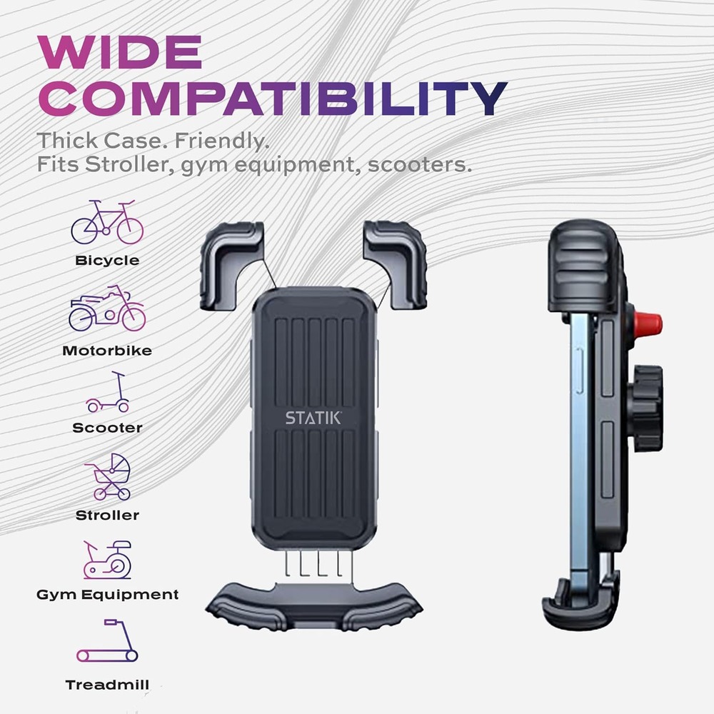 Statik Universal Motorcycle Phone Mount, Bike Phone Holder, Handlebar Mount for All Smartphones - BLACK (LANE B17)