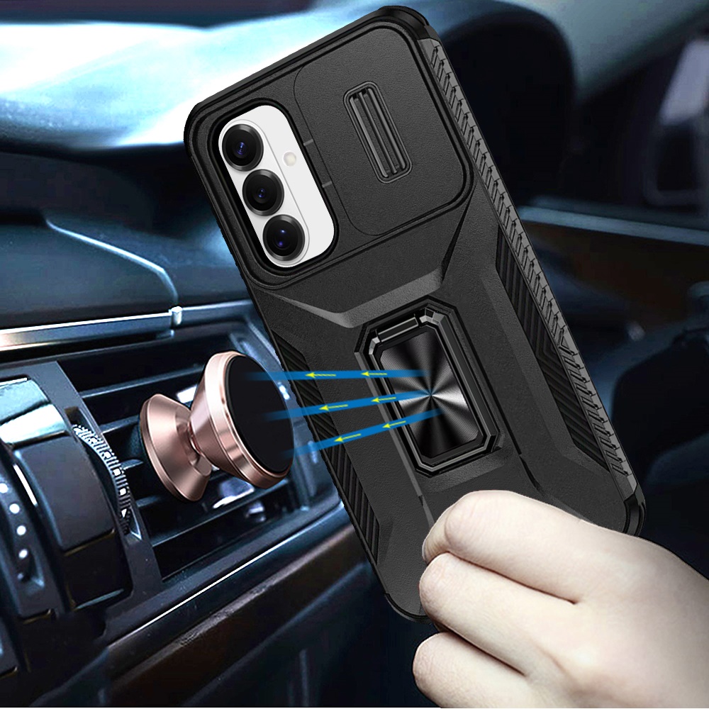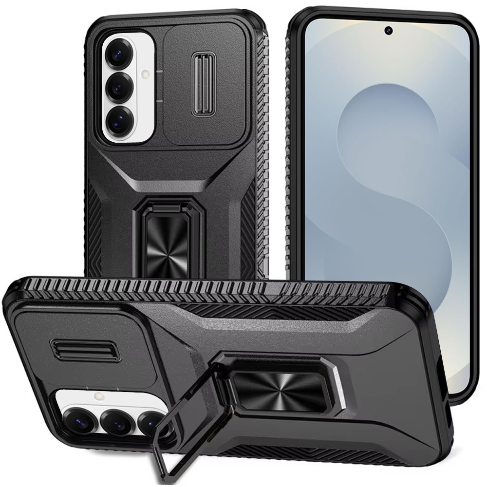 For Samsung s26 Complete Magnetic Metal Ring Stand Camera Protection Hybrid - Black