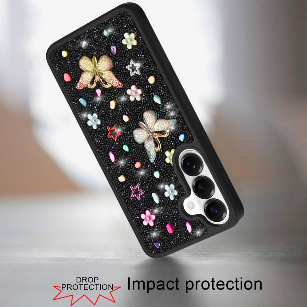 For Samsung s26 Butterfly Ornaments Diamond Bling Glitter Hybrid Case - Black