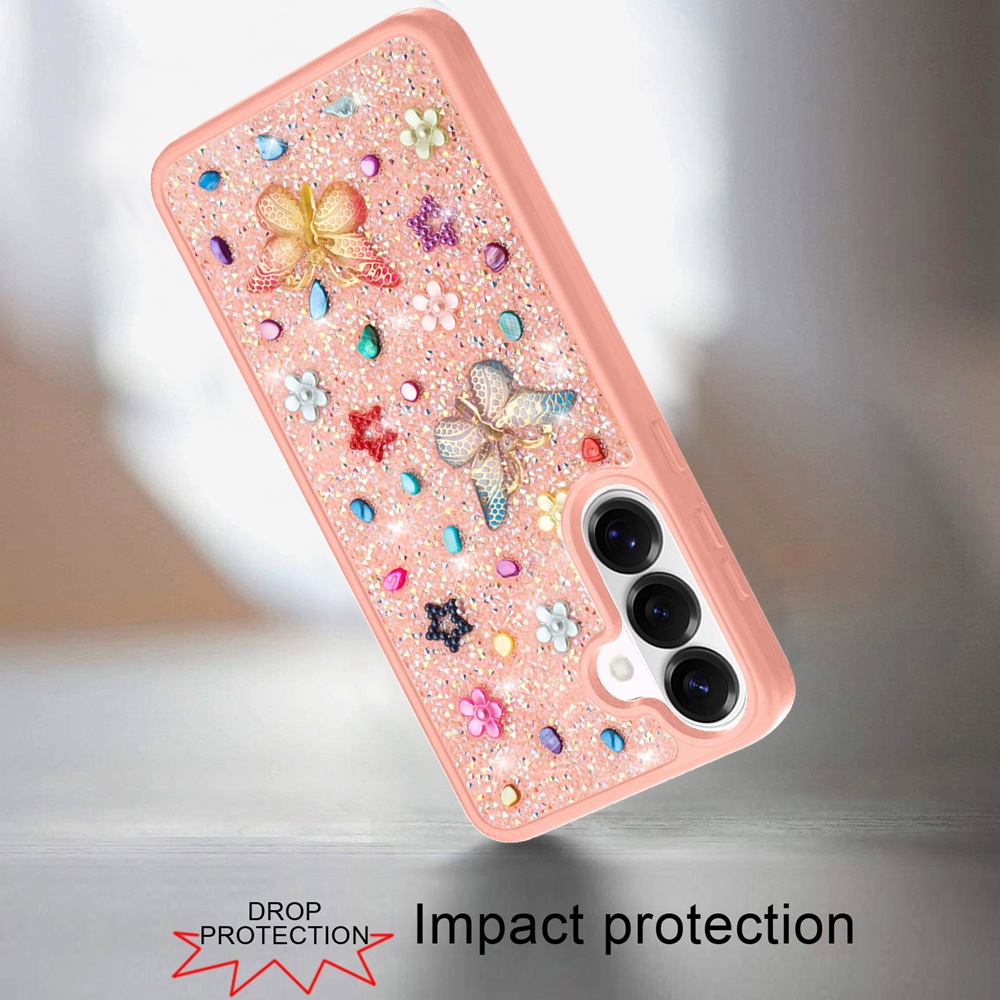 For Samsung s26 Butterfly Ornaments Diamond Bling Glitter Hybrid Case - Light Pink