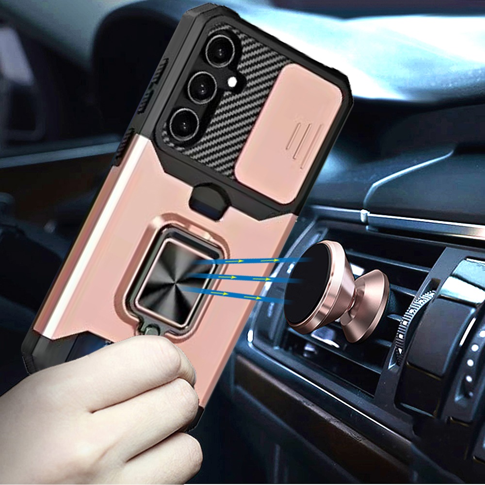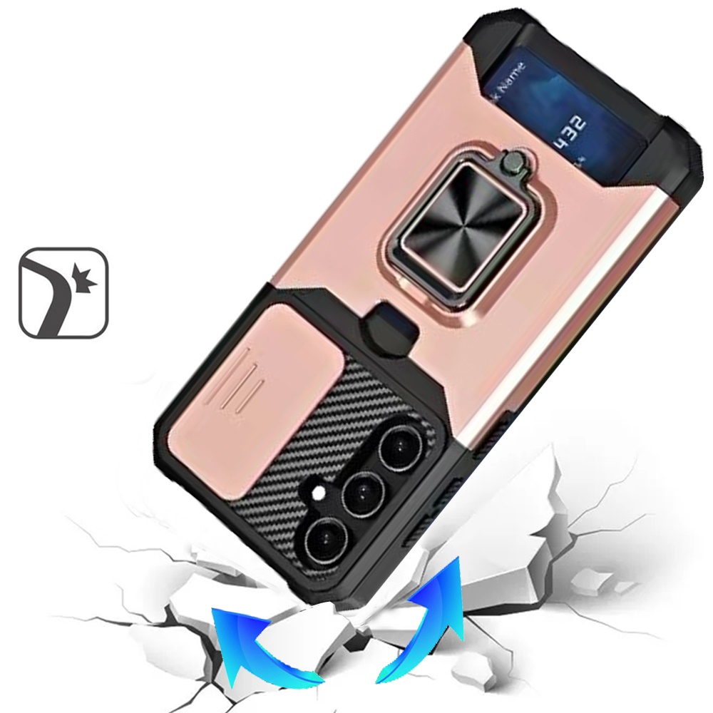 For Samsung s26 Multi-Functional Card Magnetic Ring Stand Hybrid Camera Case Cover - Rose Gold
