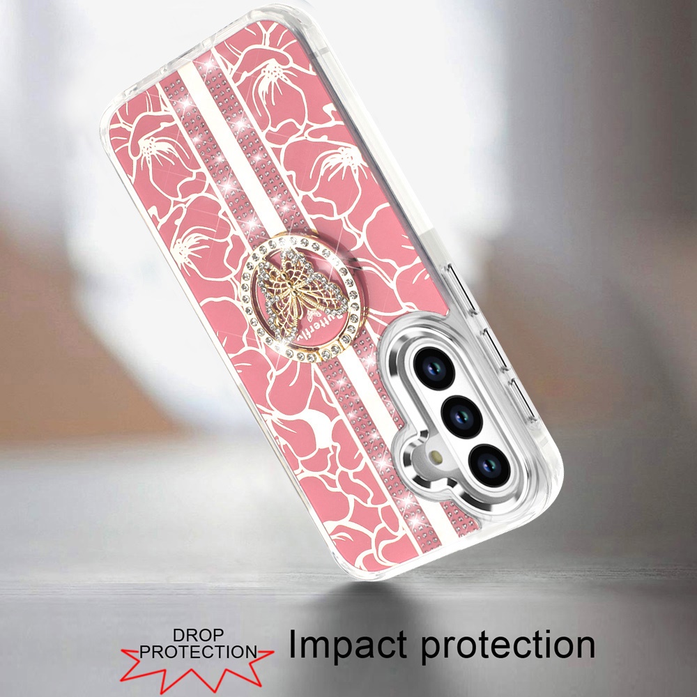 For Samsung s26 Splendid Floral Designs with Metal Camera and Buttons with Butterfly Ring Stand Hybrid Case - Light Pink