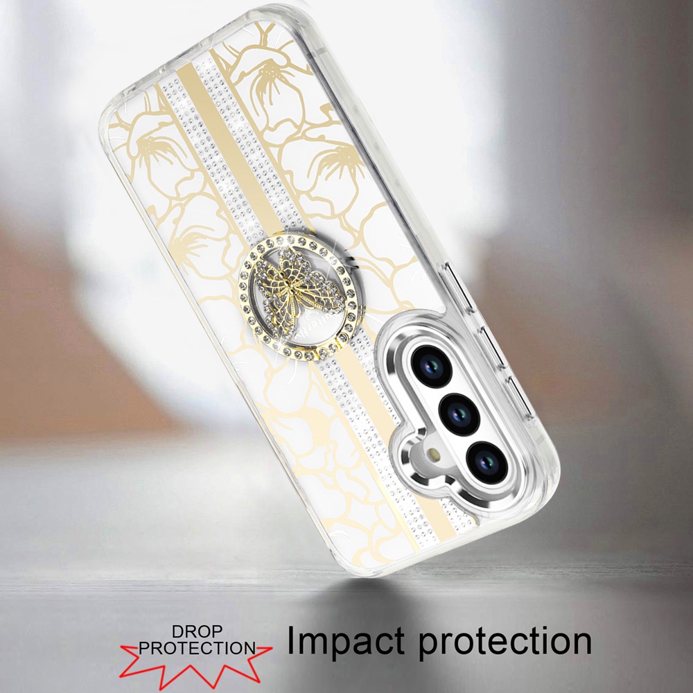 For Samsung s26 Splendid Floral Designs with Metal Camera and Buttons with Butterfly Ring Stand Hybrid Case - White