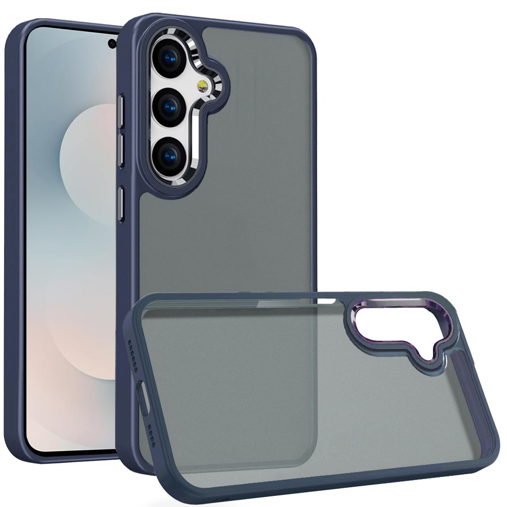 For Samsung s26 Polished Oil Thick Acrylic Metal Button Hybrid Case Cover - Dark Blue