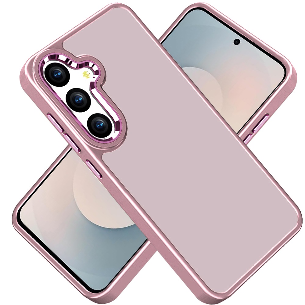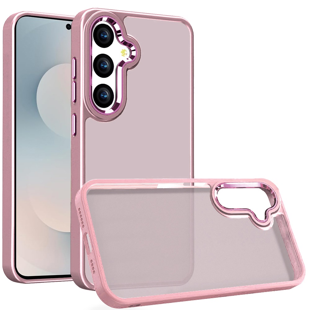 For Samsung s26 Polished Oil Thick Acrylic Metal Button Hybrid Case Cover - Light Pink