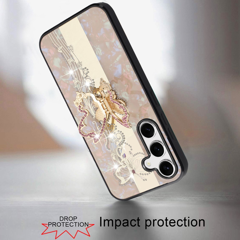 For Samsung s26 SPLENDID Diamond Glitter Ornaments Engraving Case Cover - Enchanted Butterfly Gold