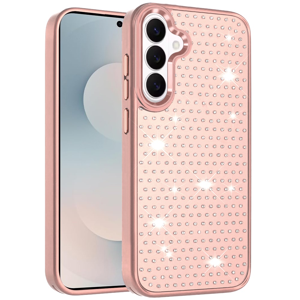 For Samsung s26 Beautiful Diamond Metallic Design Metal Chrome Edged Hybrid - Rose Gold