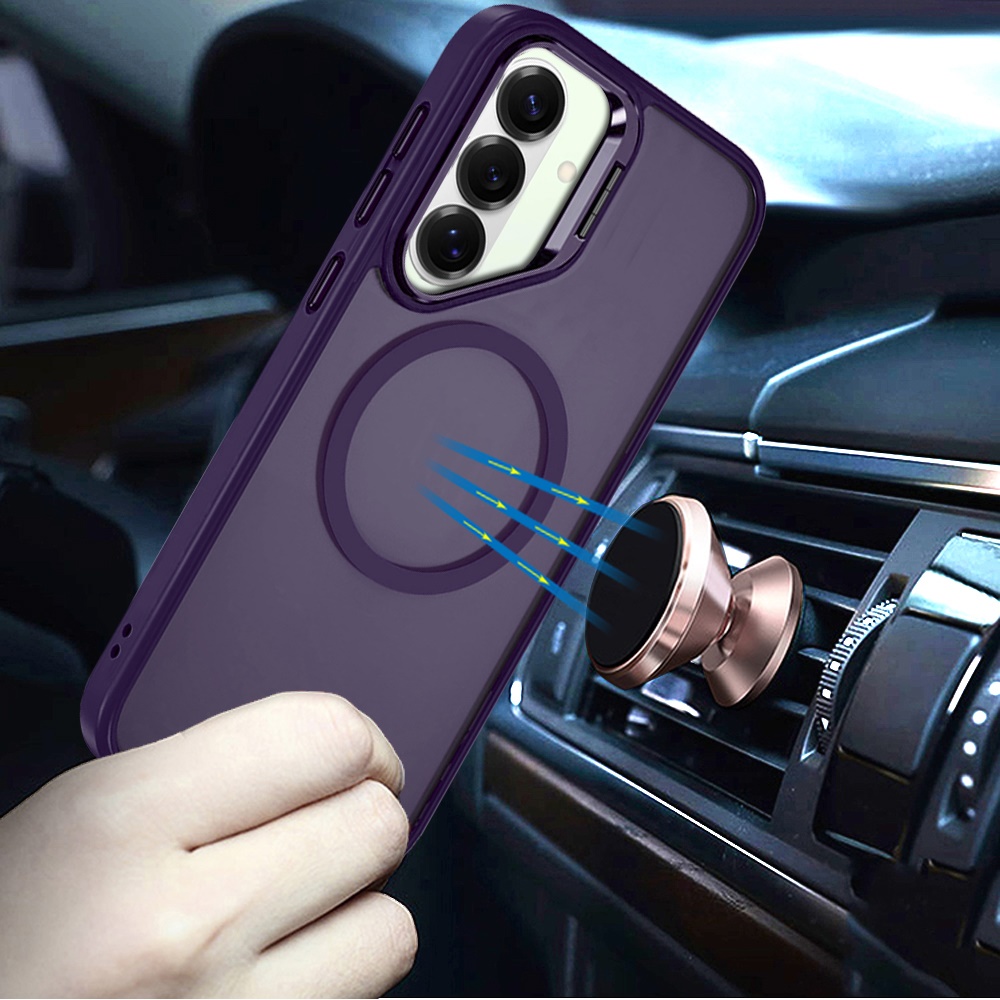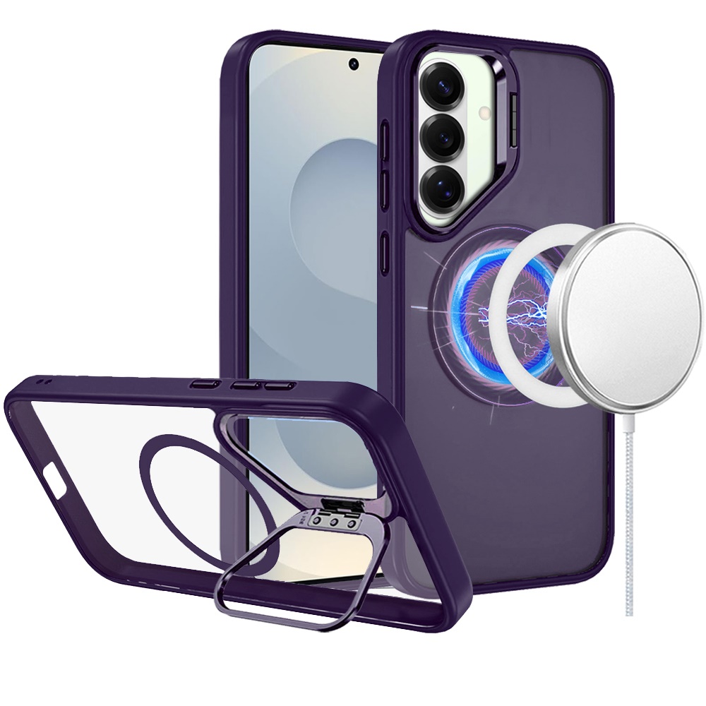 For Samsung s26 Fearless Tough HQ Metallic Hybrid with Camera Ring Stand [Magnetic Circle] Case - Dark Purple