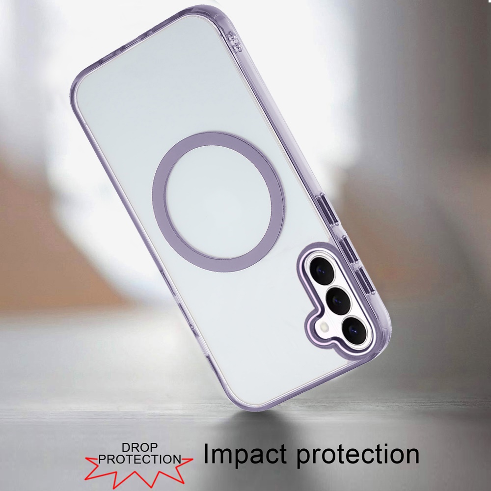For Samsung s26 Magnetic Circle Ring Transparent Premium Acrylic with Metal Buttons & Camera Raised Lip - Light Purple