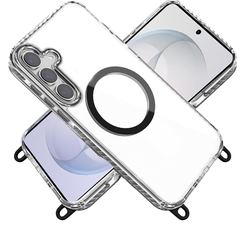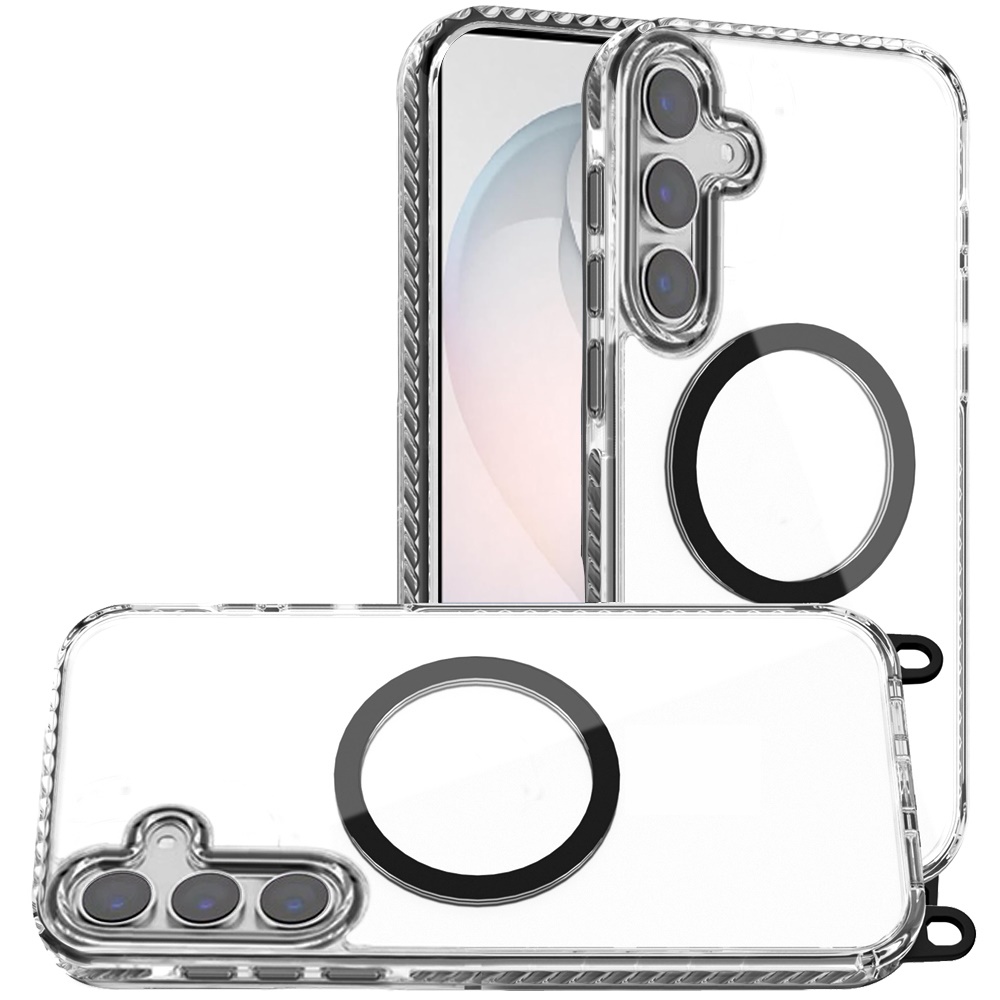 For Samsung s26 Transparent HQ Clear Line Design Edged Hybrid [Magnetic Circle] with Matching Lanyard - Black
