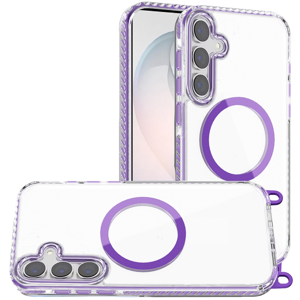 For Samsung s26 Transparent HQ Clear Line Design Edged Hybrid [Magnetic Circle] with Matching Lanyard - Dark Purple