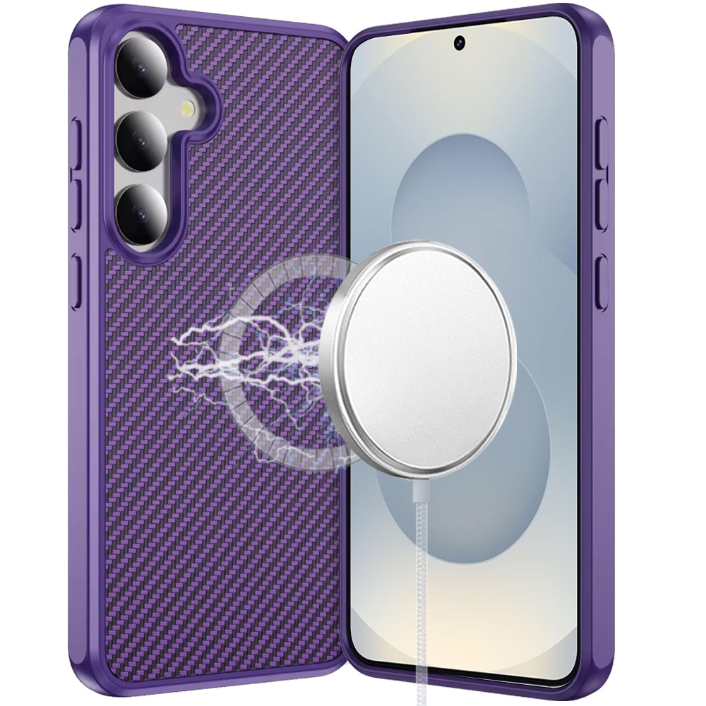For Samsung s26 CarbonFiber Design Magnetic Ring HQ Thick 2.0mm Hybrid Case - Dark Purple