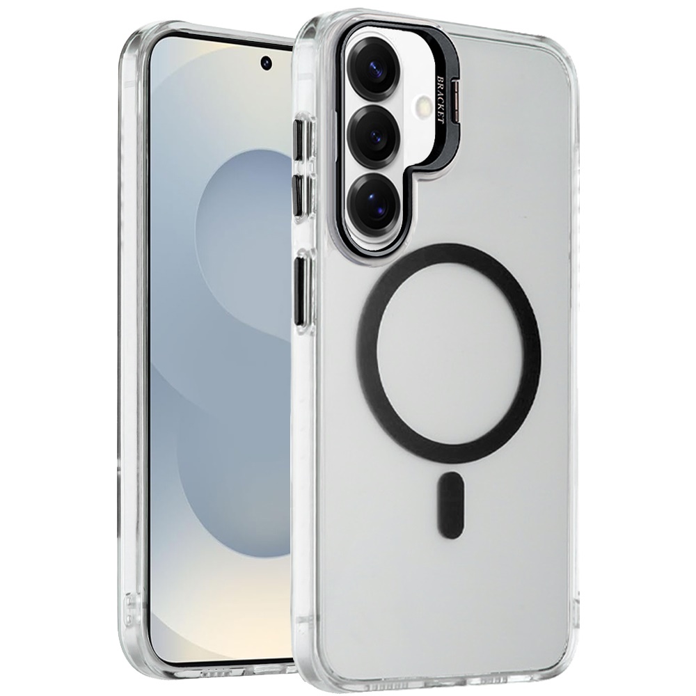 For Samsung s26 Transparent HQ Hybrid with Metallic Camera Stand Magnetic Ring Case - Black