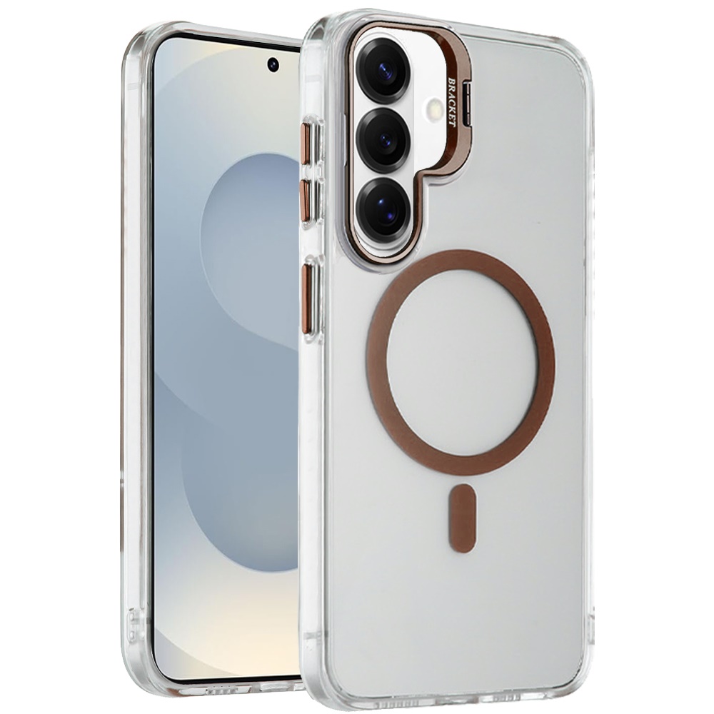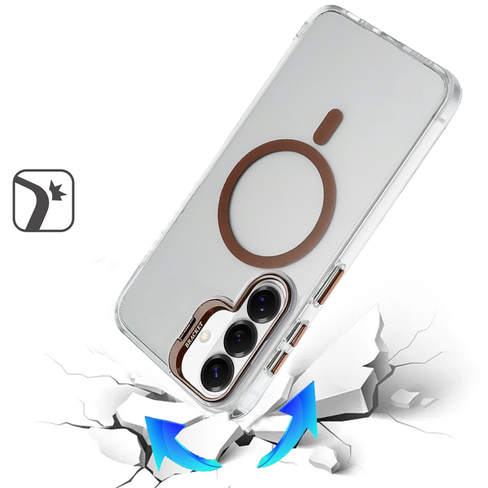 For Samsung s26 Transparent HQ Hybrid with Metallic Camera Stand Magnetic Ring Case - Desert Gold