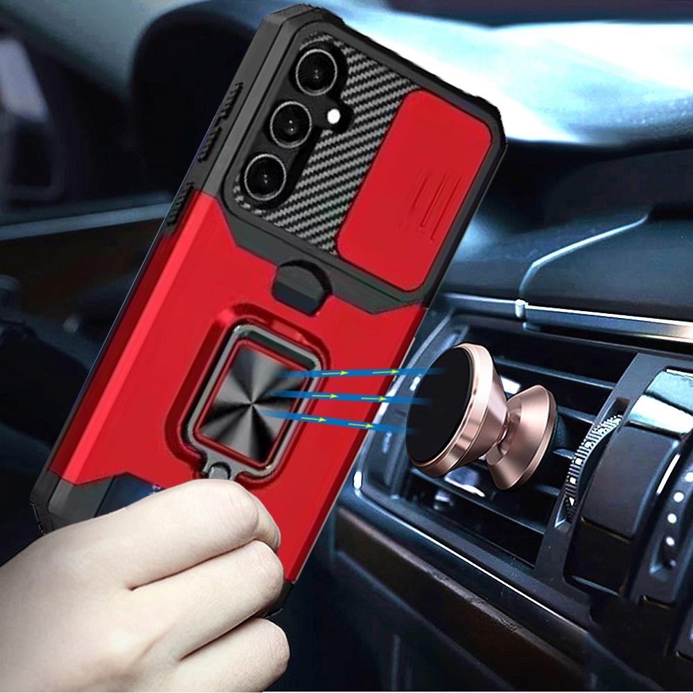 For Samsung s26 Plus Multi-Functional Card Magnetic Ring Stand Hybrid Camera Case Cover - Red
