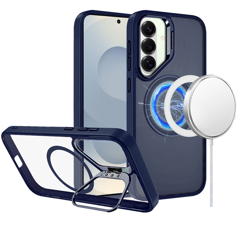 For Samsung s26 Edge Fearless Tough HQ Metallic Hybrid with Camera Ring Stand [Magnetic Circle] Case - Navy Blue