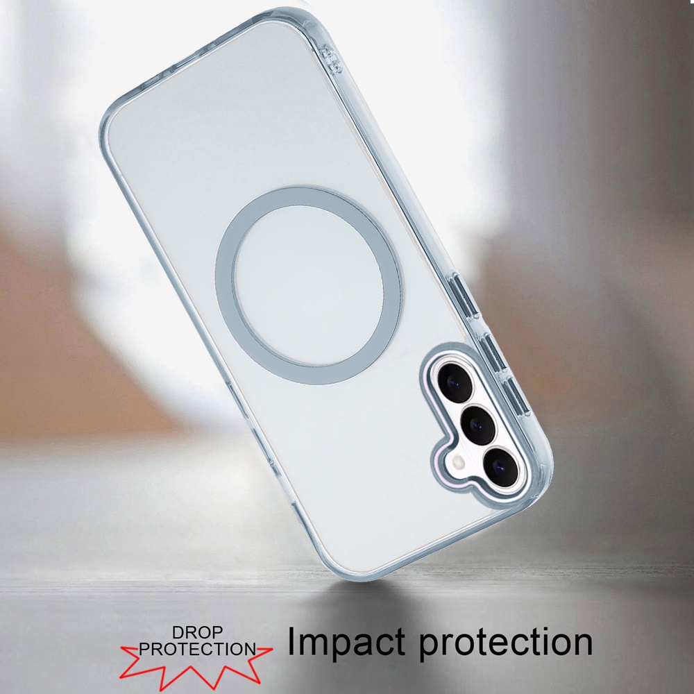 For Samsung s26 Plus Magnetic Circle Ring Transparent Premium Acrylic with Metal Buttons & Camera Raised Lip - Light Blue