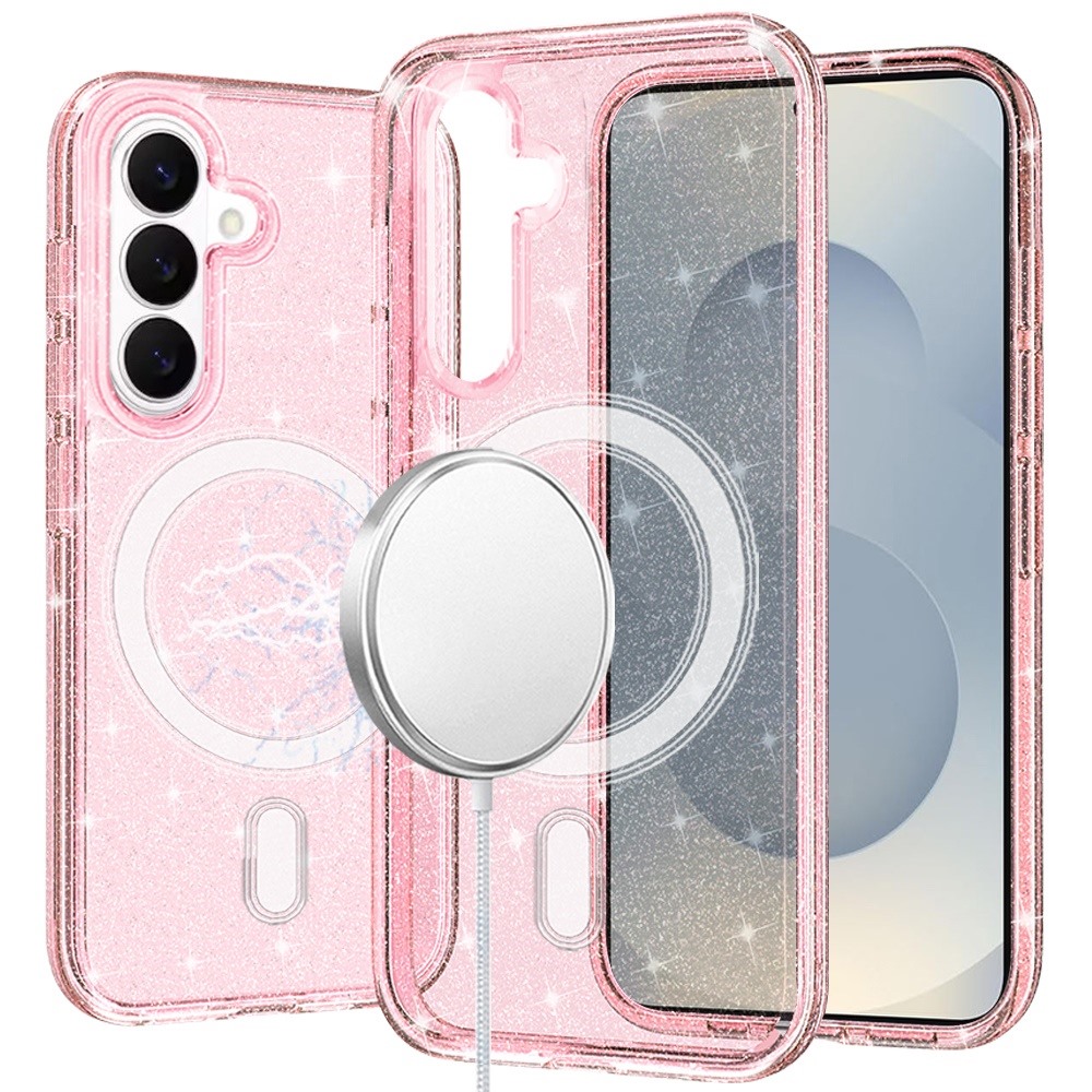 For Samsung s26 Edge Glitter Ultra [Magnetic Circle] Thick 3mm Transparent Hybrid - Pink
