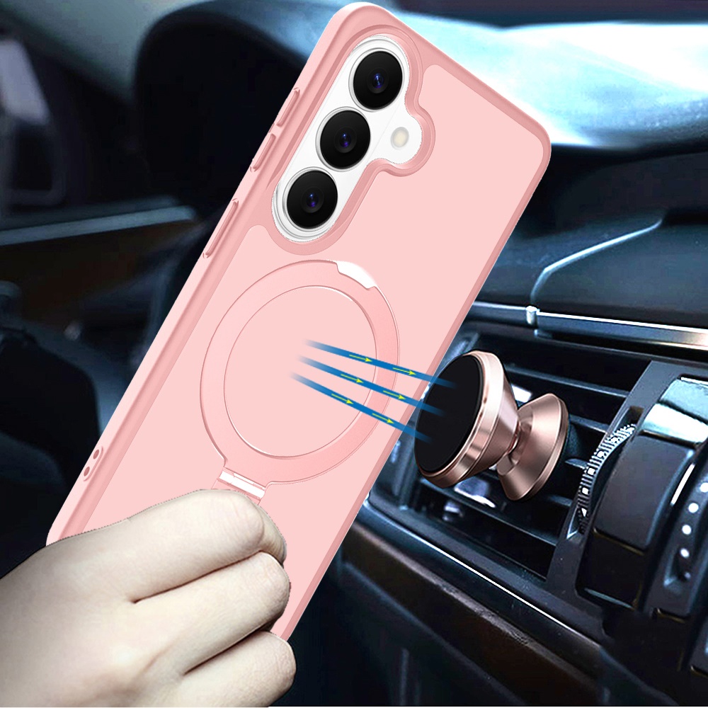 For Samsung s26 Edge Magnetic Matching Ring Stand Full Rotation Matte Hybrid - Light Pink