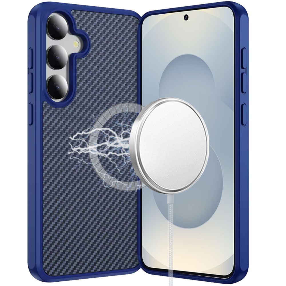 For Samsung s26 Edge CarbonFiber Design Magnetic Ring HQ Thick 2.0mm Hybrid Case - Navy Blue