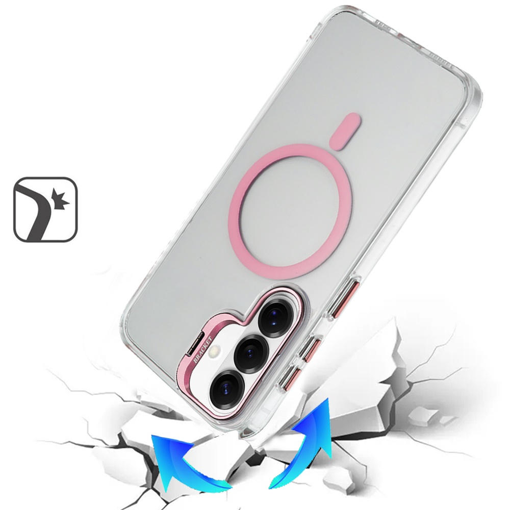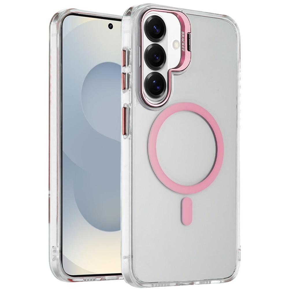 For Samsung s26 Edge Transparent HQ Hybrid with Metallic Camera Stand Magnetic Ring Case - Pink
