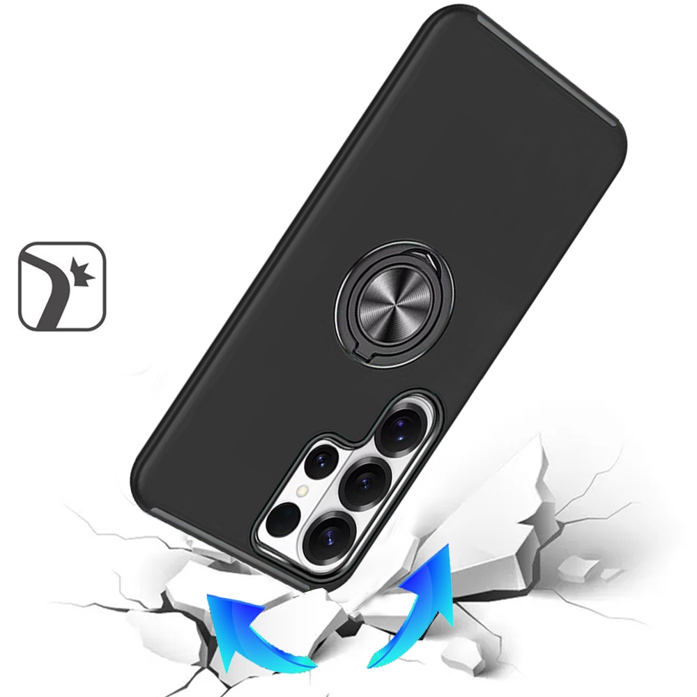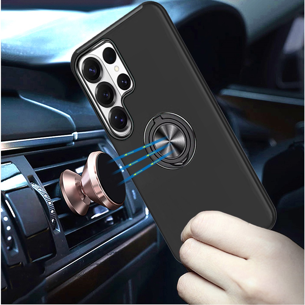 For Samsung s26 Ultra CHIEF Oil Painted Magnetic Ring Stand Hybrid Case Cover - Black