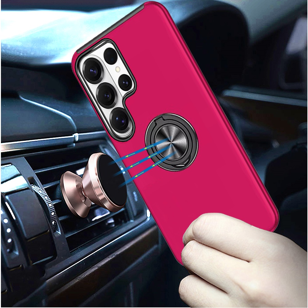 For Samsung s26 Ultra CHIEF Oil Painted Magnetic Ring Stand Hybrid Case Cover - Hot Pink