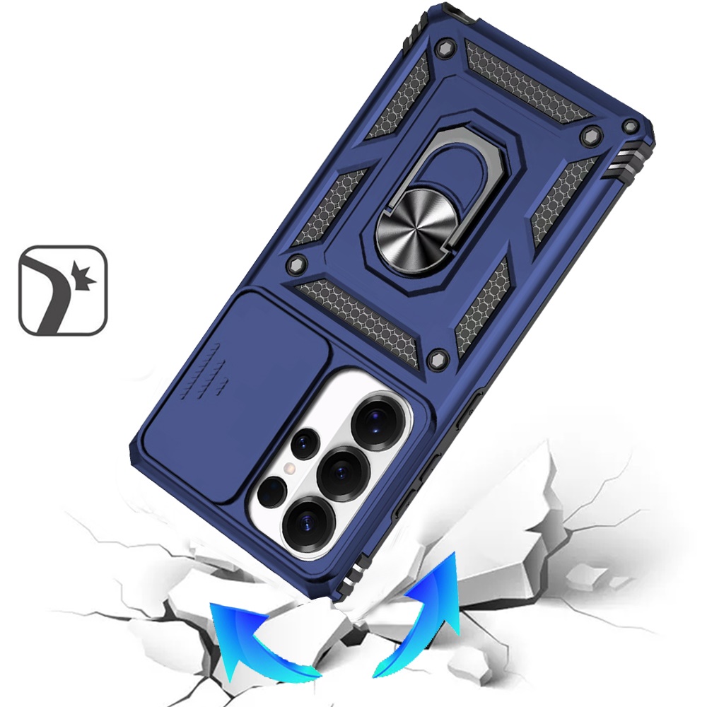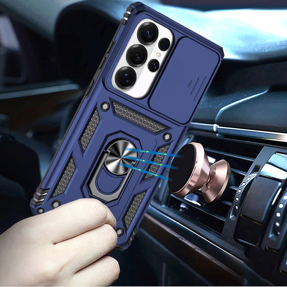 For Samsung s26 Ultra Well Protective Magentic Ring Stand Camera Protective Cover Case - Blue