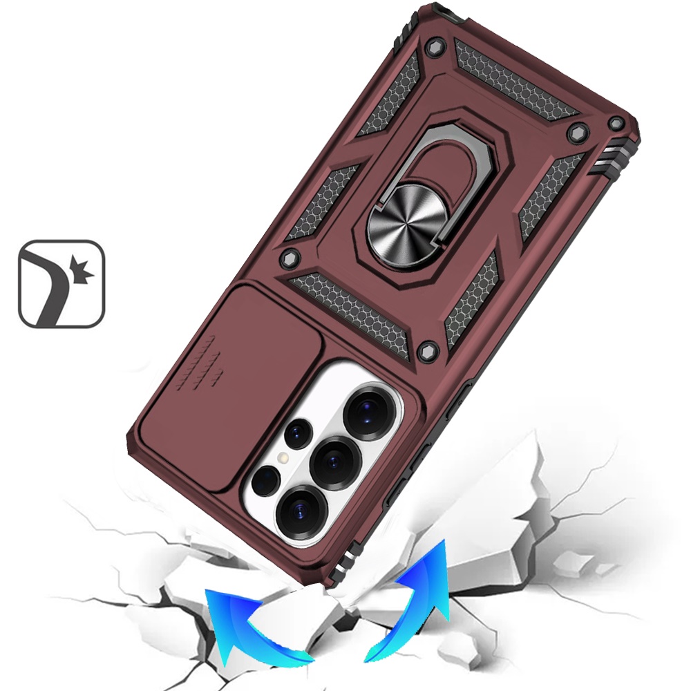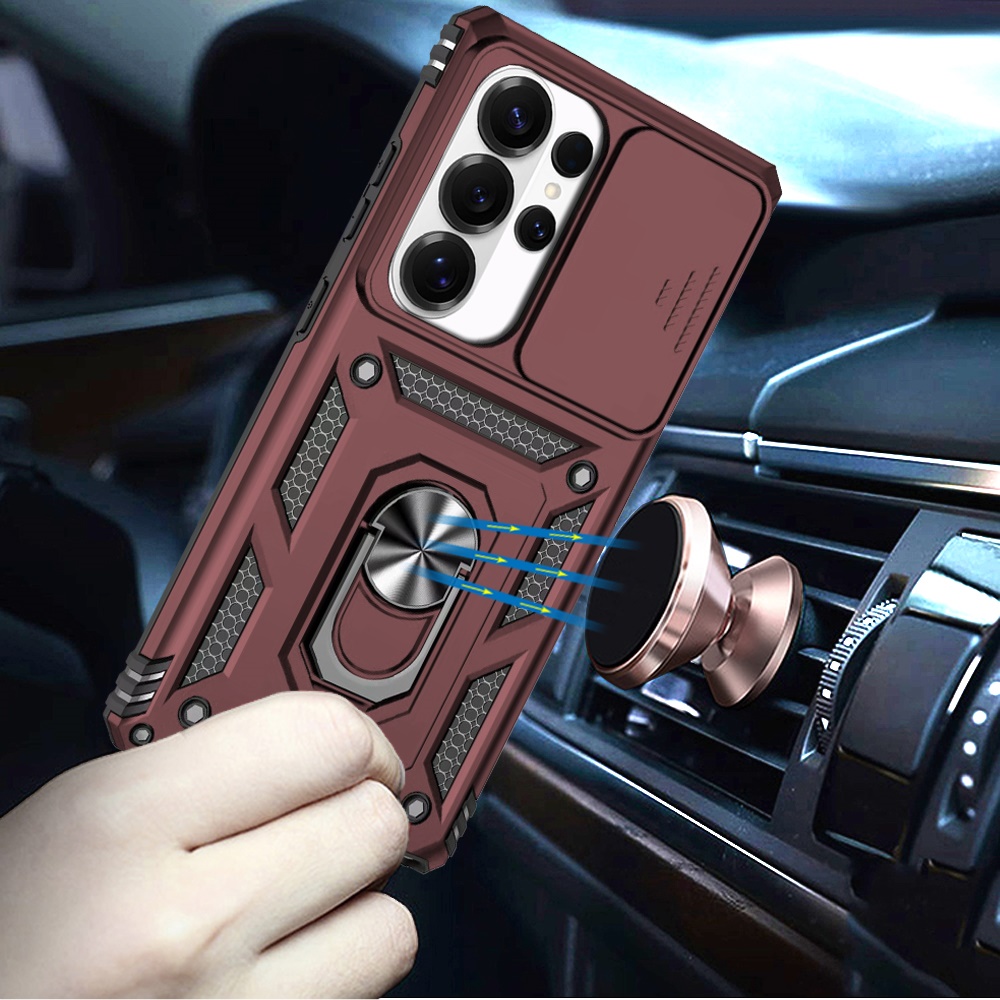 For Samsung s26 Ultra Well Protective Magentic Ring Stand Camera Protective Cover Case - Burgundy